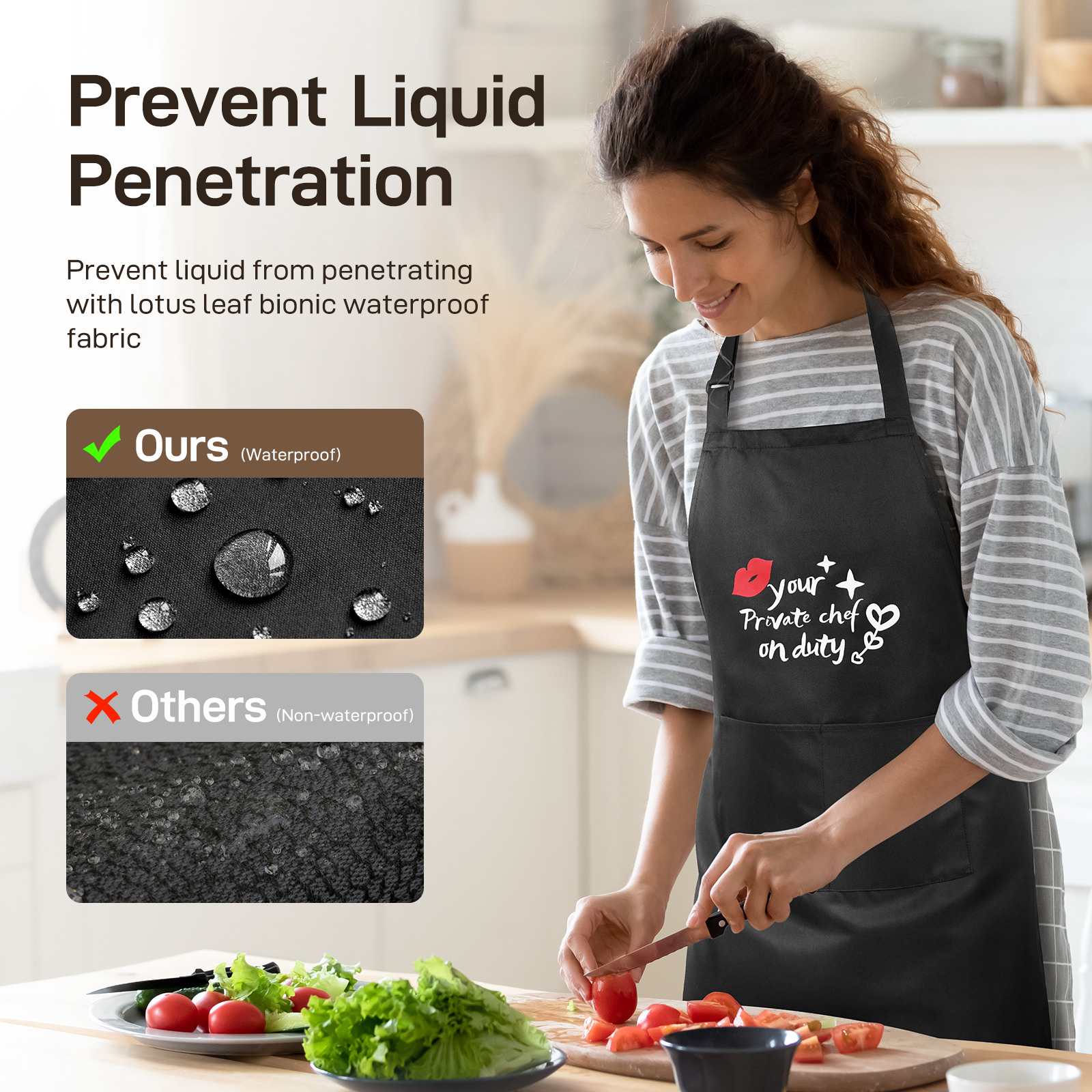 - ✅[WHAT YOU GET]: 2 Funny Kitchen Aprons for Couples (featuring "Your Private Chef on Duty"); [Lifetime Warranty] Feel free to reach out to us for solutions that guarantee your 100% satisfaction.