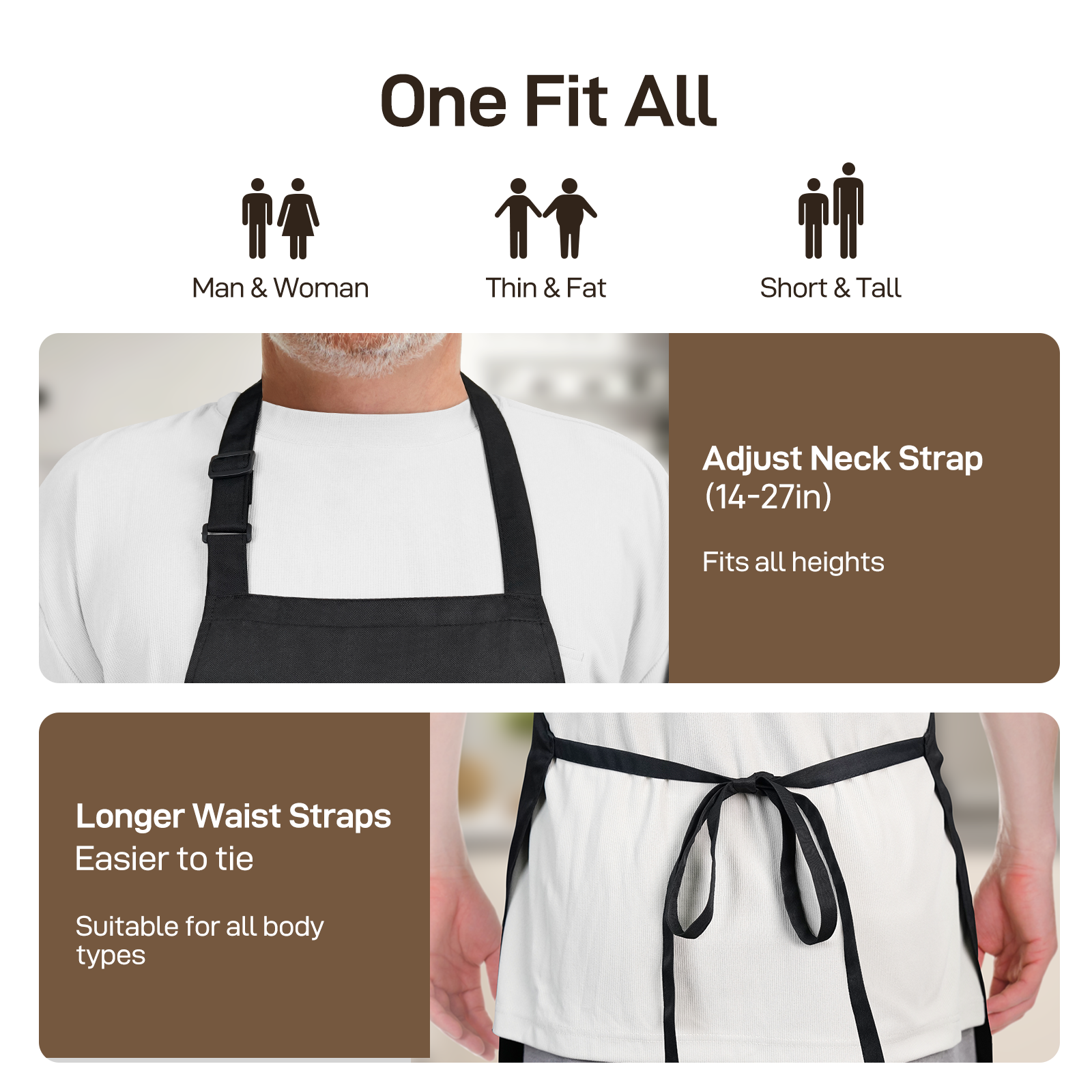 - ✅[ADJUSTABLE TO FIT ALL]: Adjustable neck strap (14-27 inches) and 28-inch long waist ties make this couple aprons set adaptable for all sizes, providing a comfortable fit and easier tying.